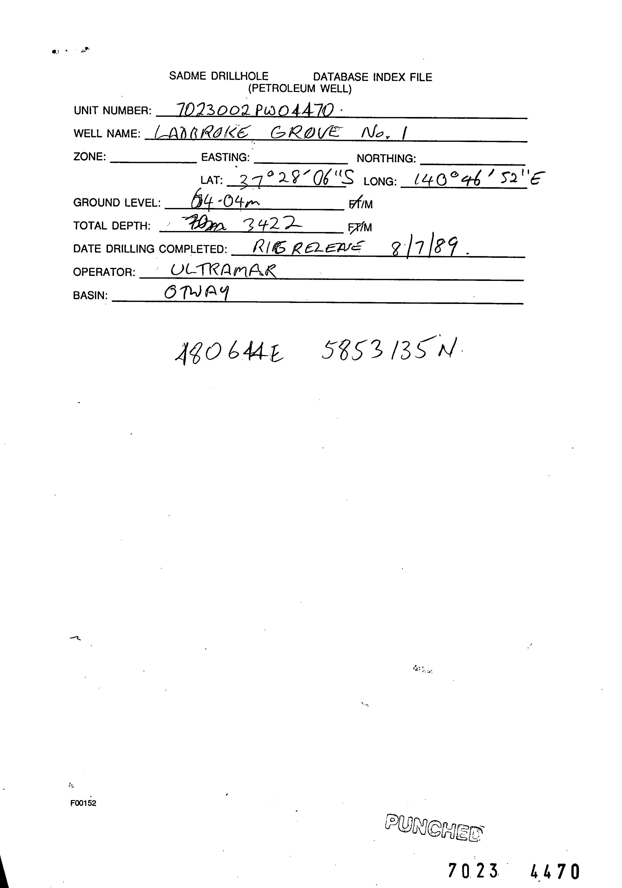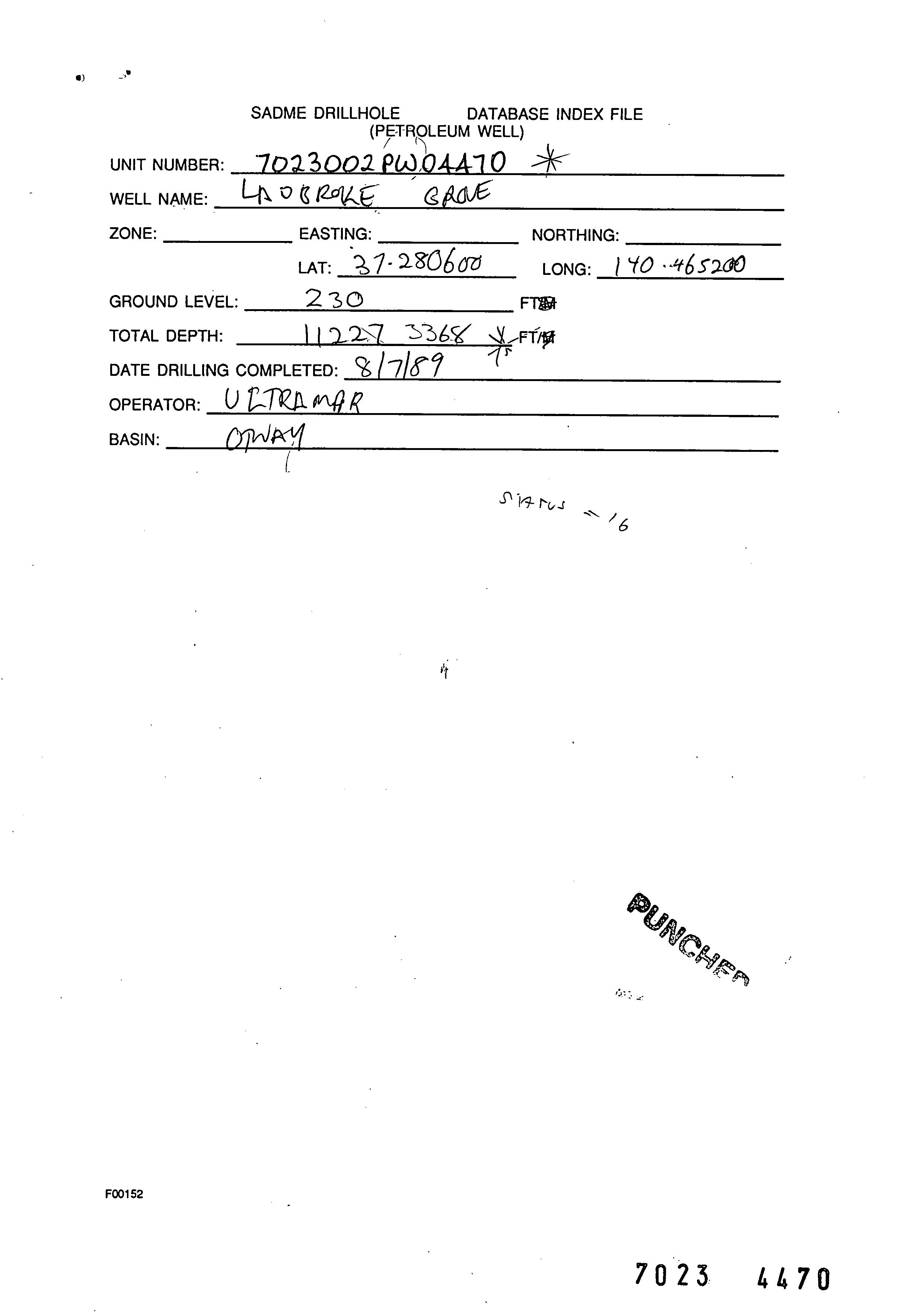 | 440 | | Drill cuttings | WHITE, M.R. | |