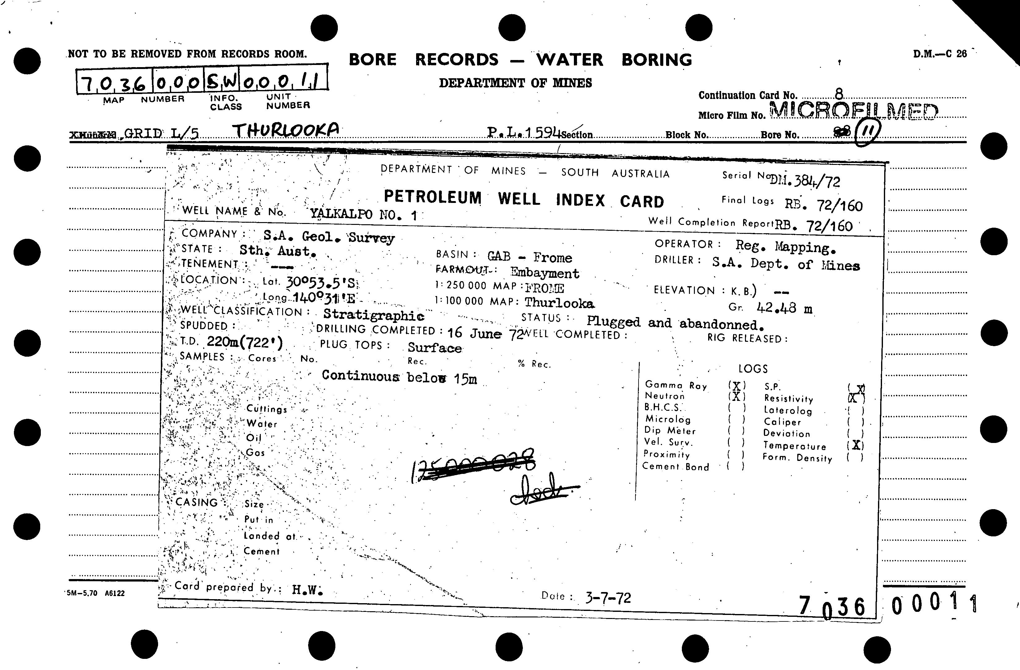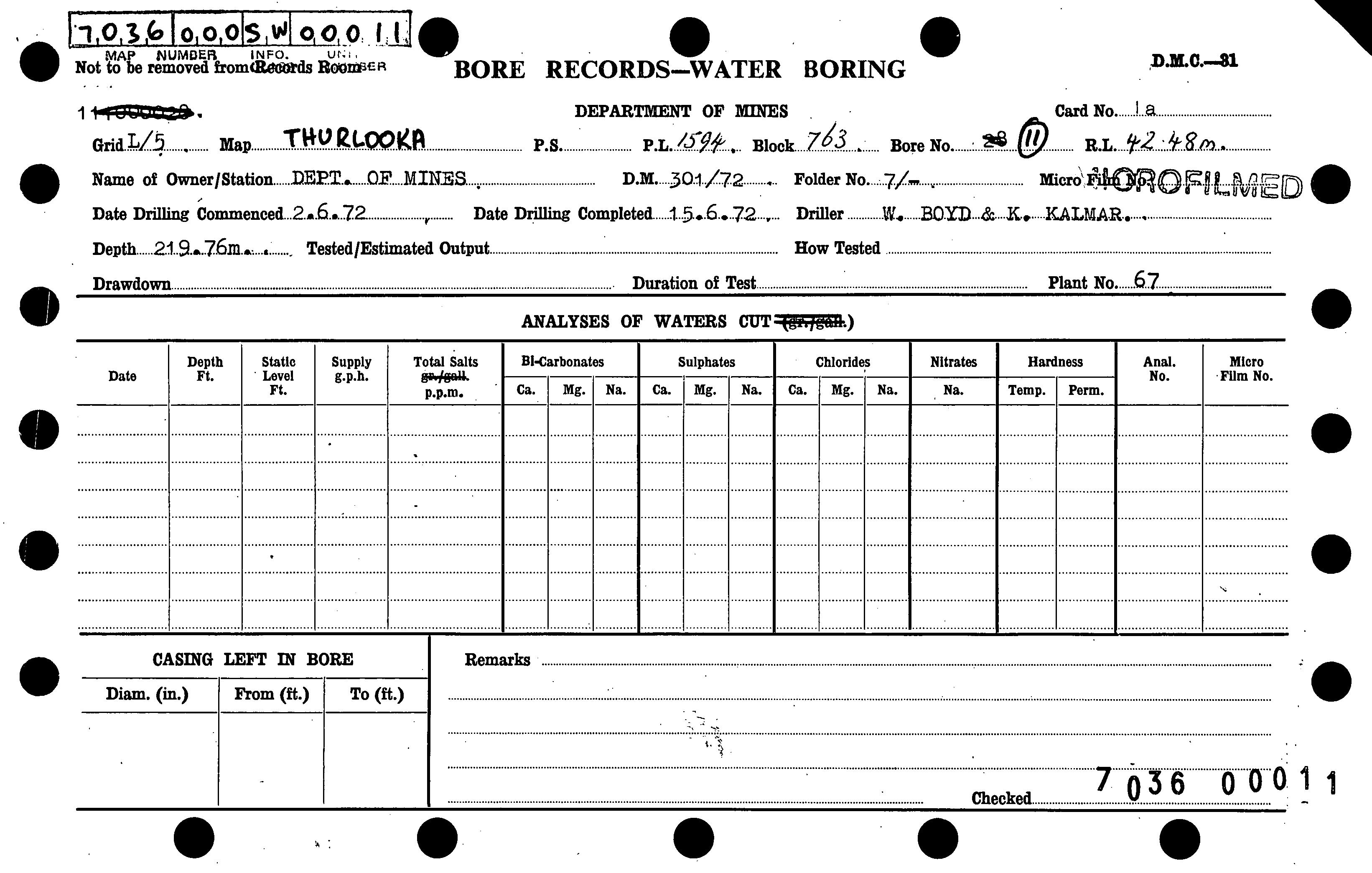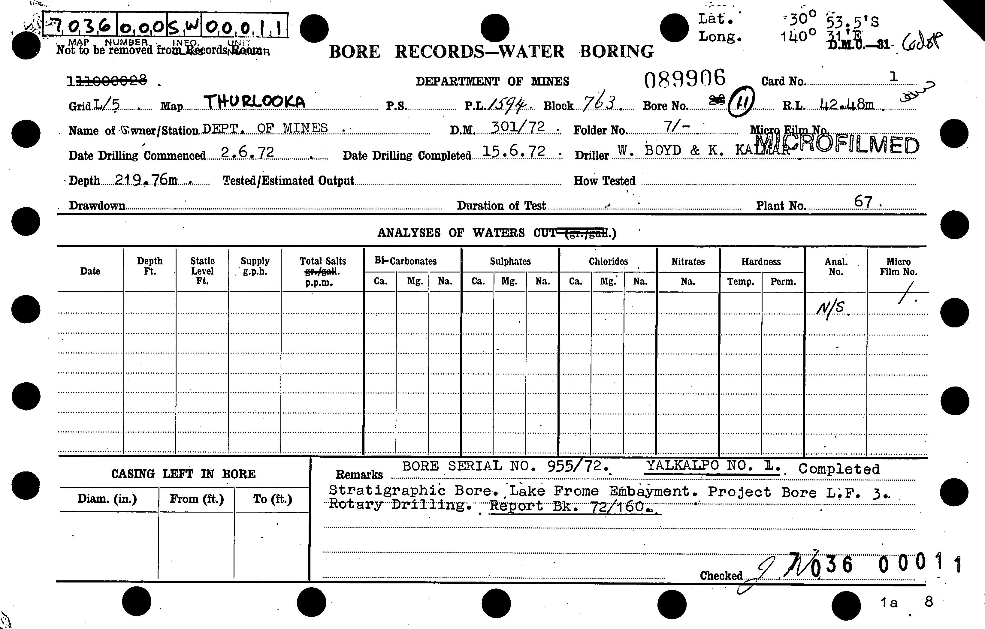 | 180.71 | | Drill core | CALLEN, R.A. | 20/06/1972 |