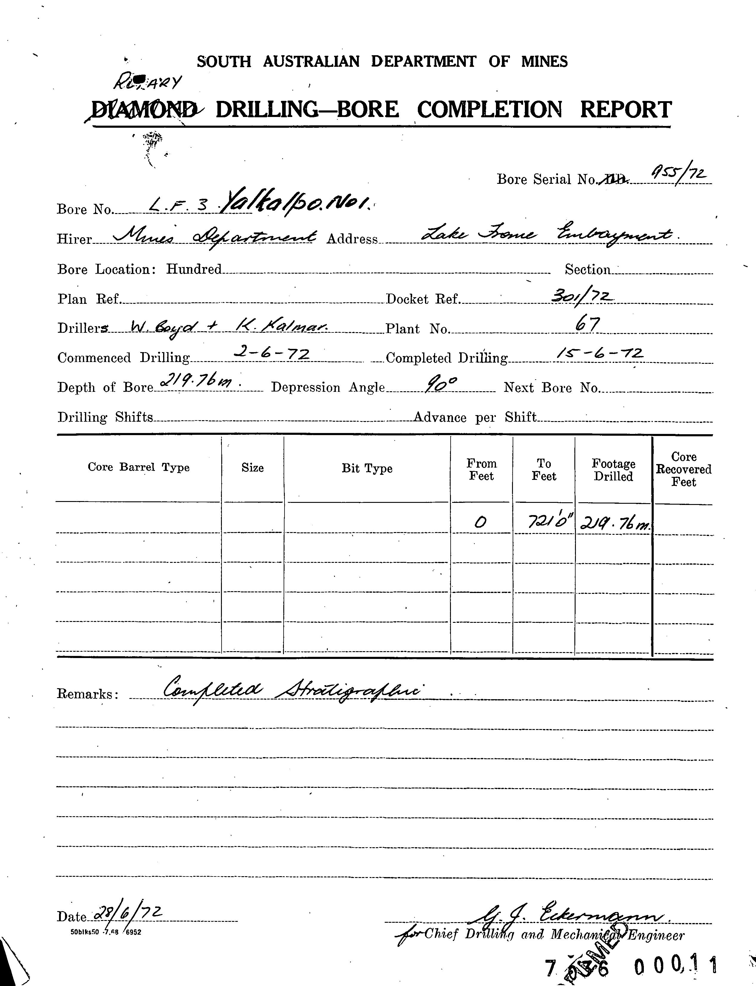 | 155.2 | | Drill core | CALLEN, R.A. | 20/06/1972 |