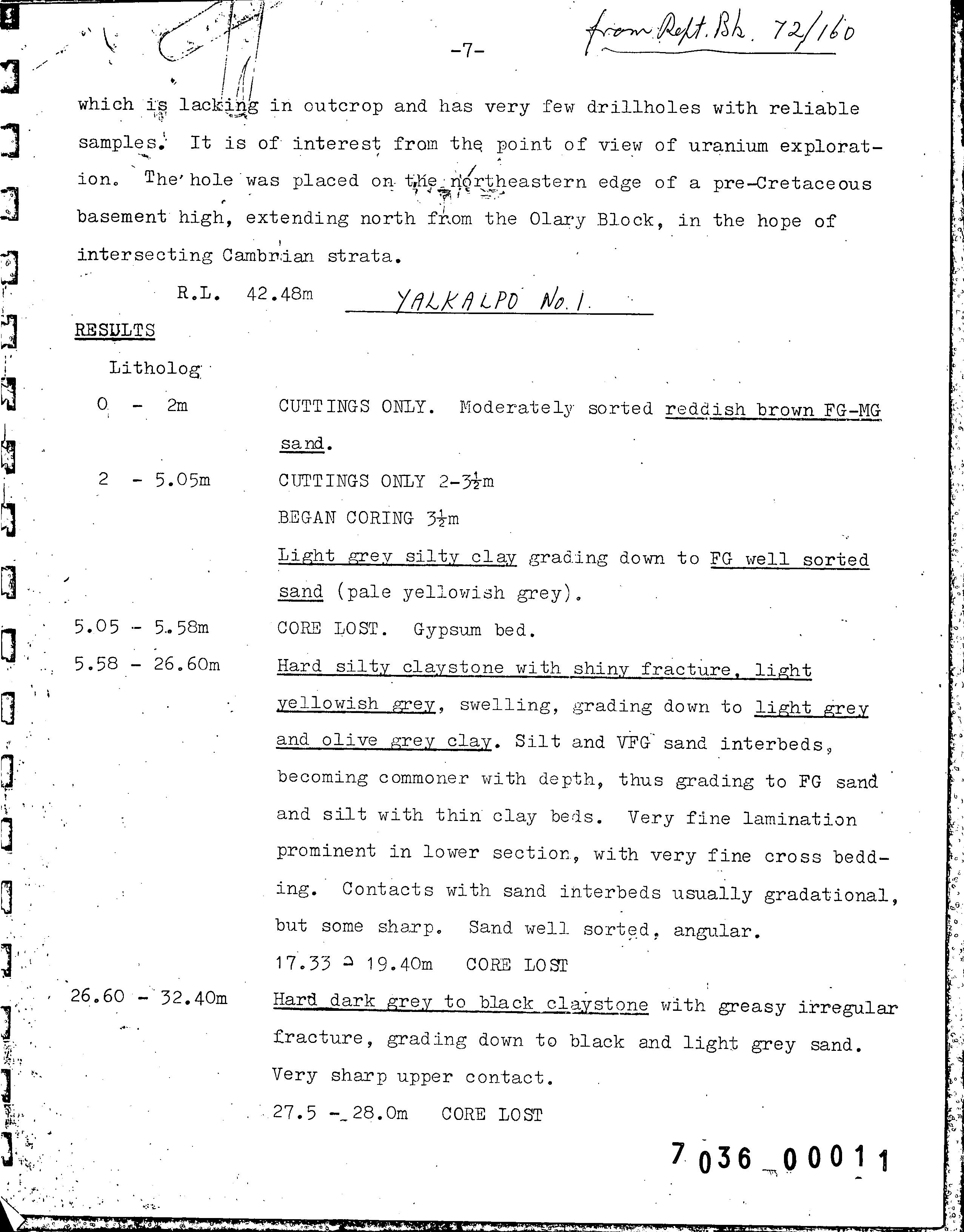 | 30.3 | | Drill core | CALLEN, R.A. | 19/03/1973 |