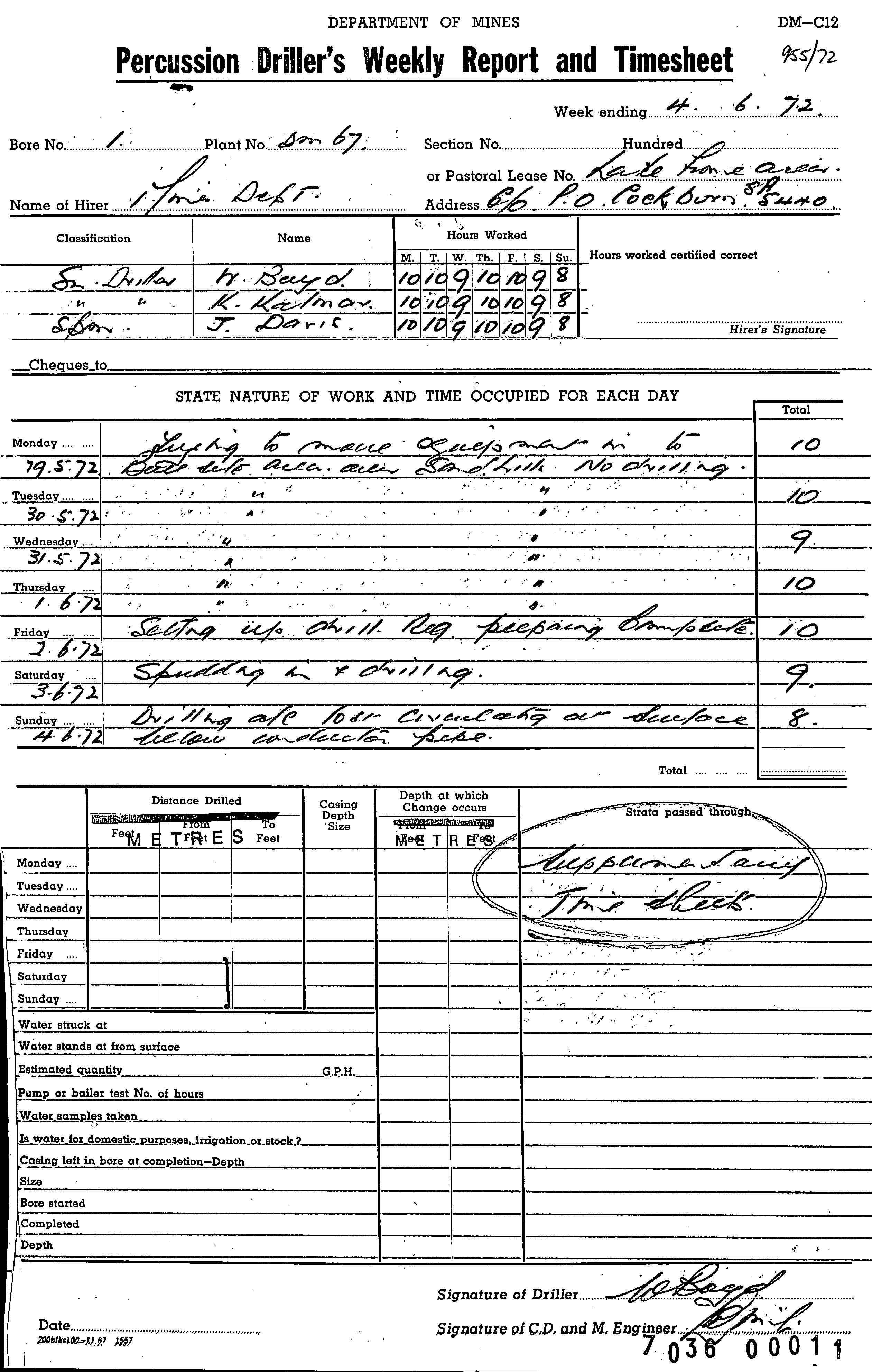 | 9.04 | | Drill core | CALLEN, R.A. | 19/03/1973 |