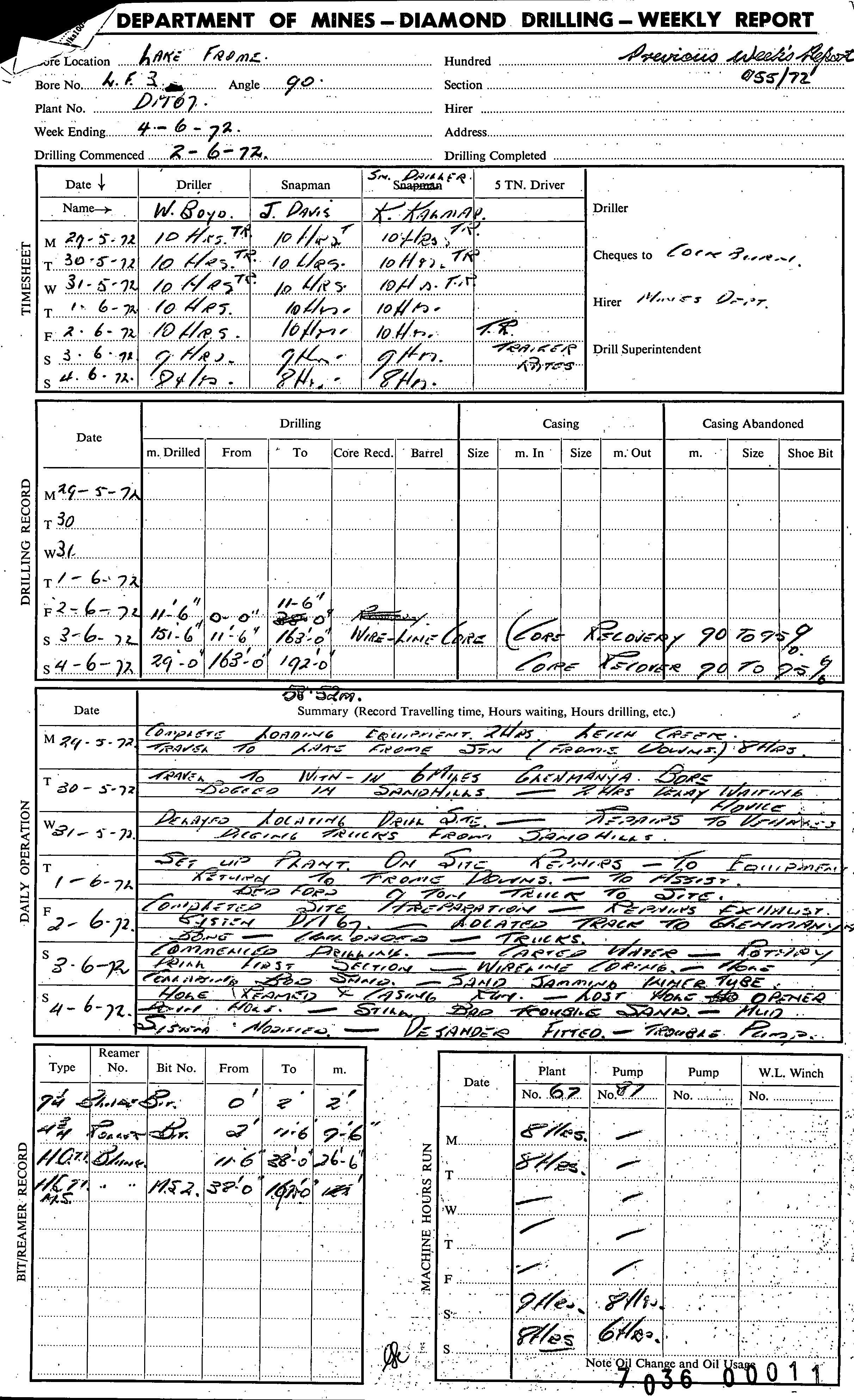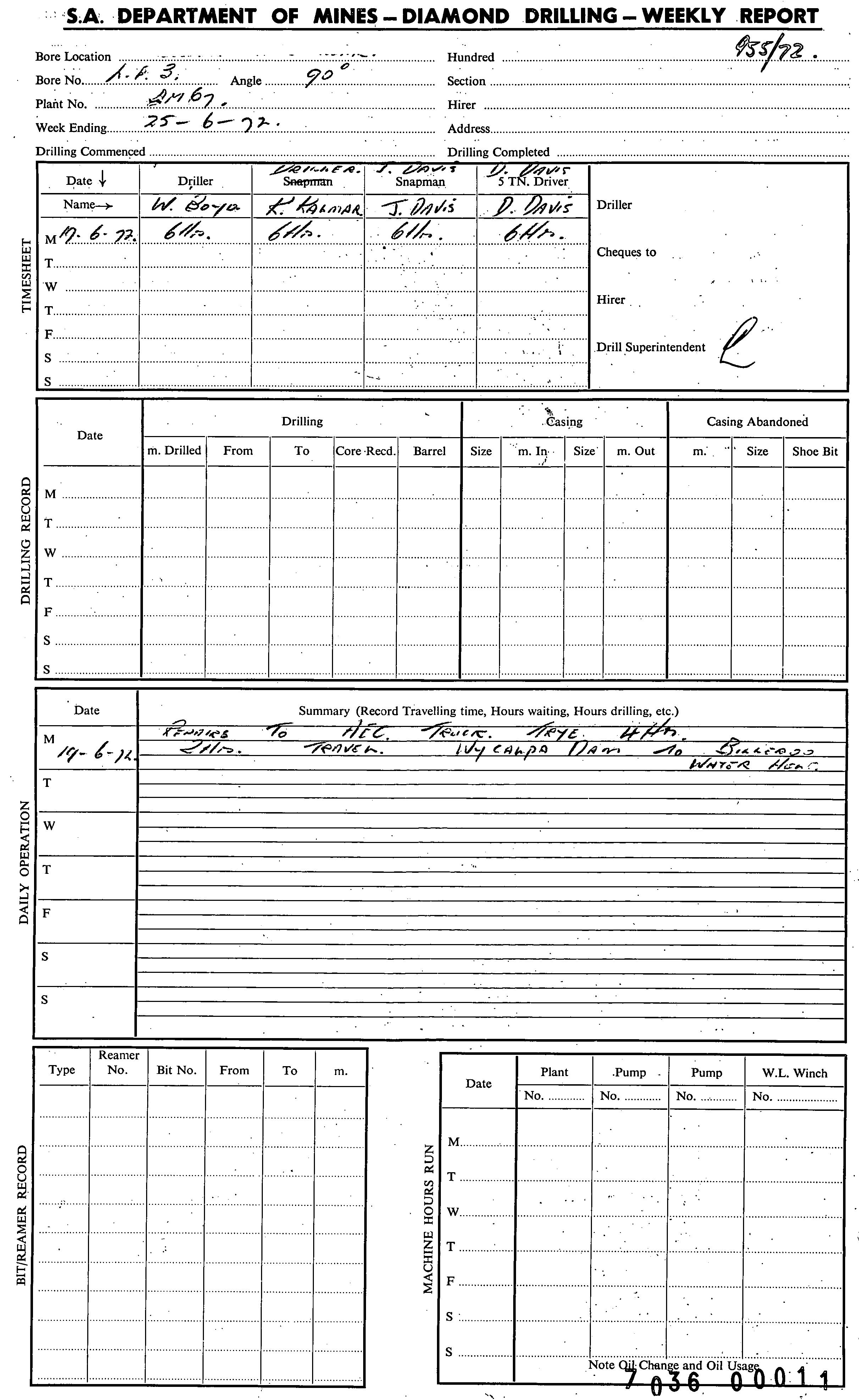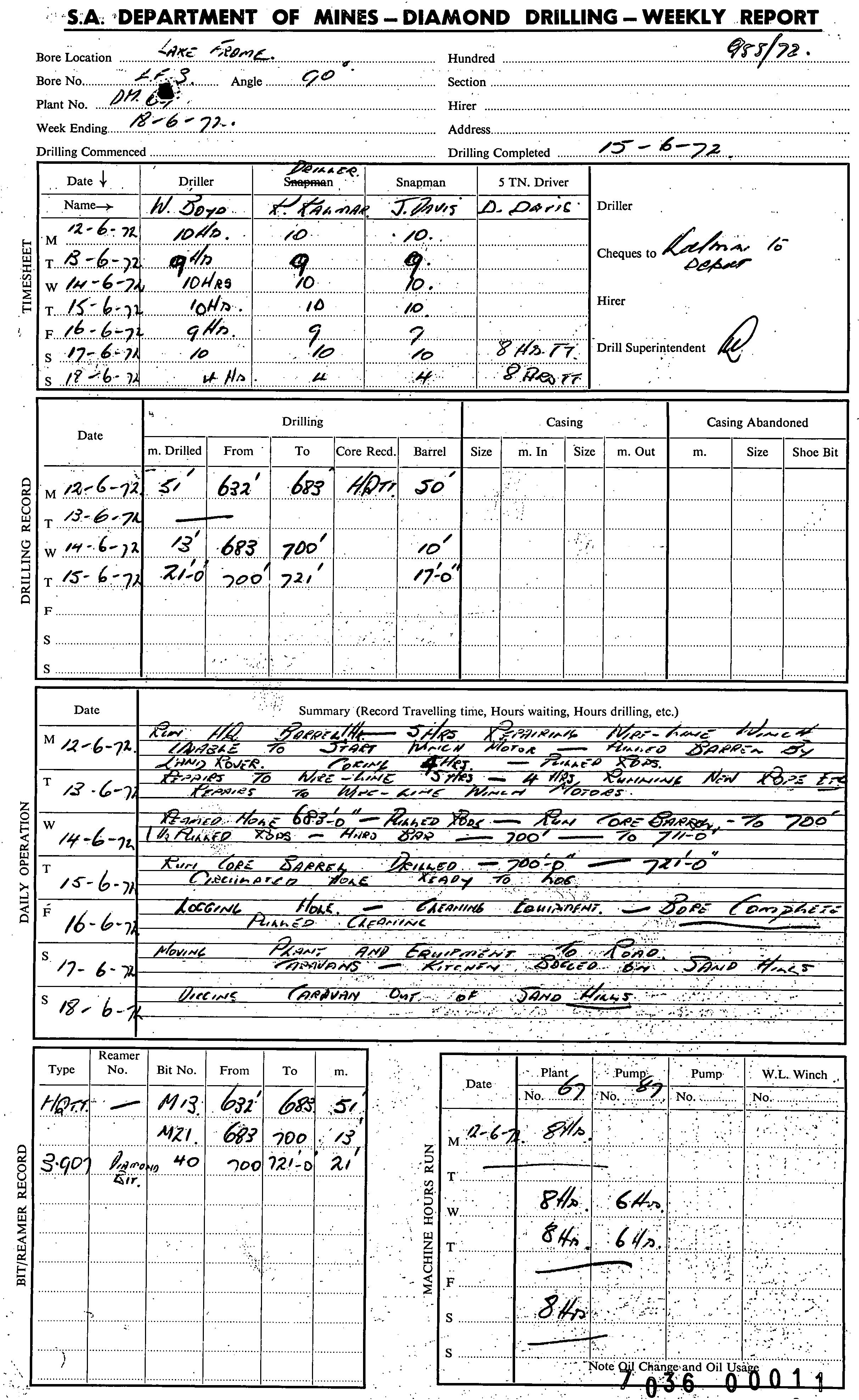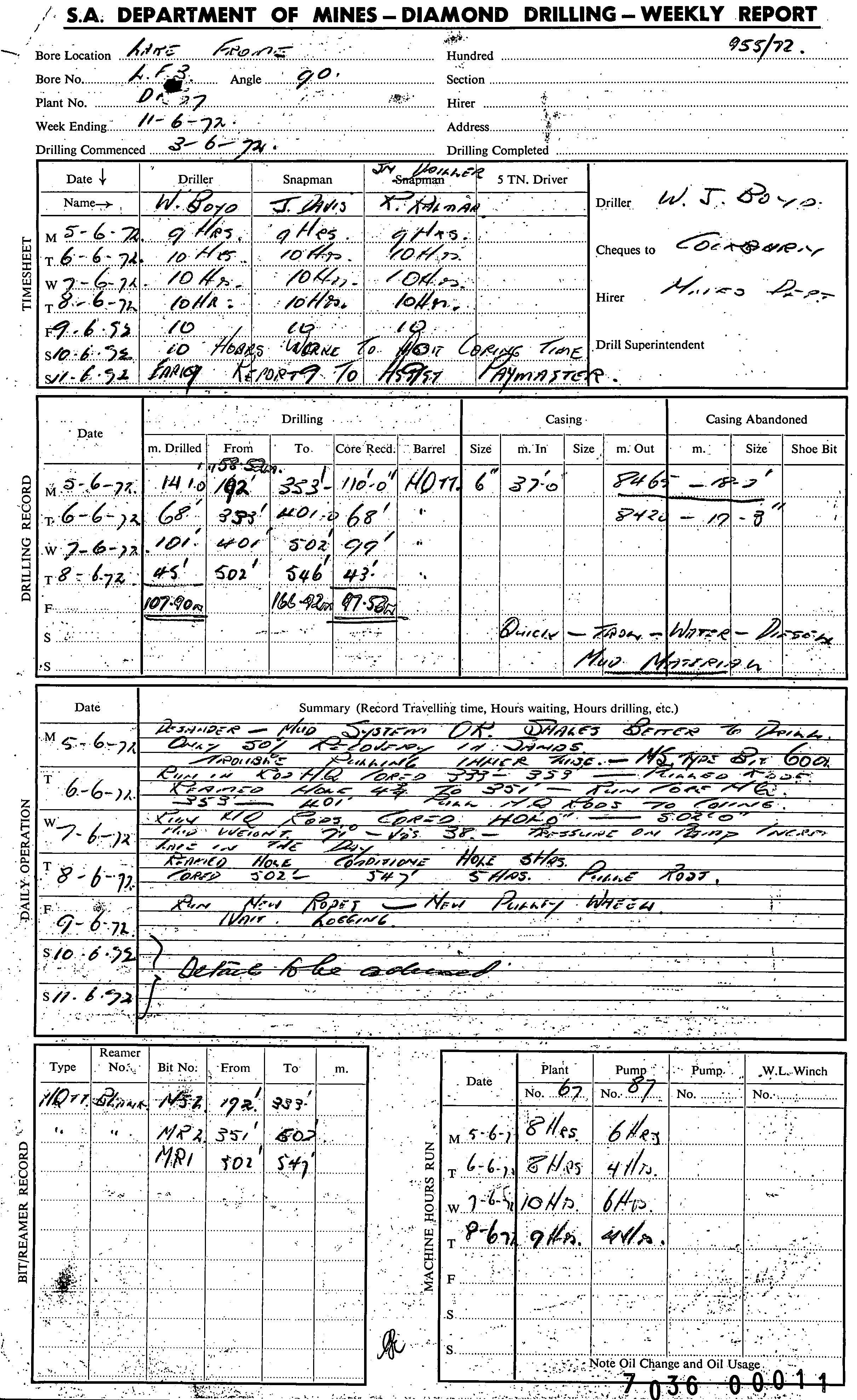 | 190.72 | | Drill core | CALLEN, R.A. | 20/06/1972 |
