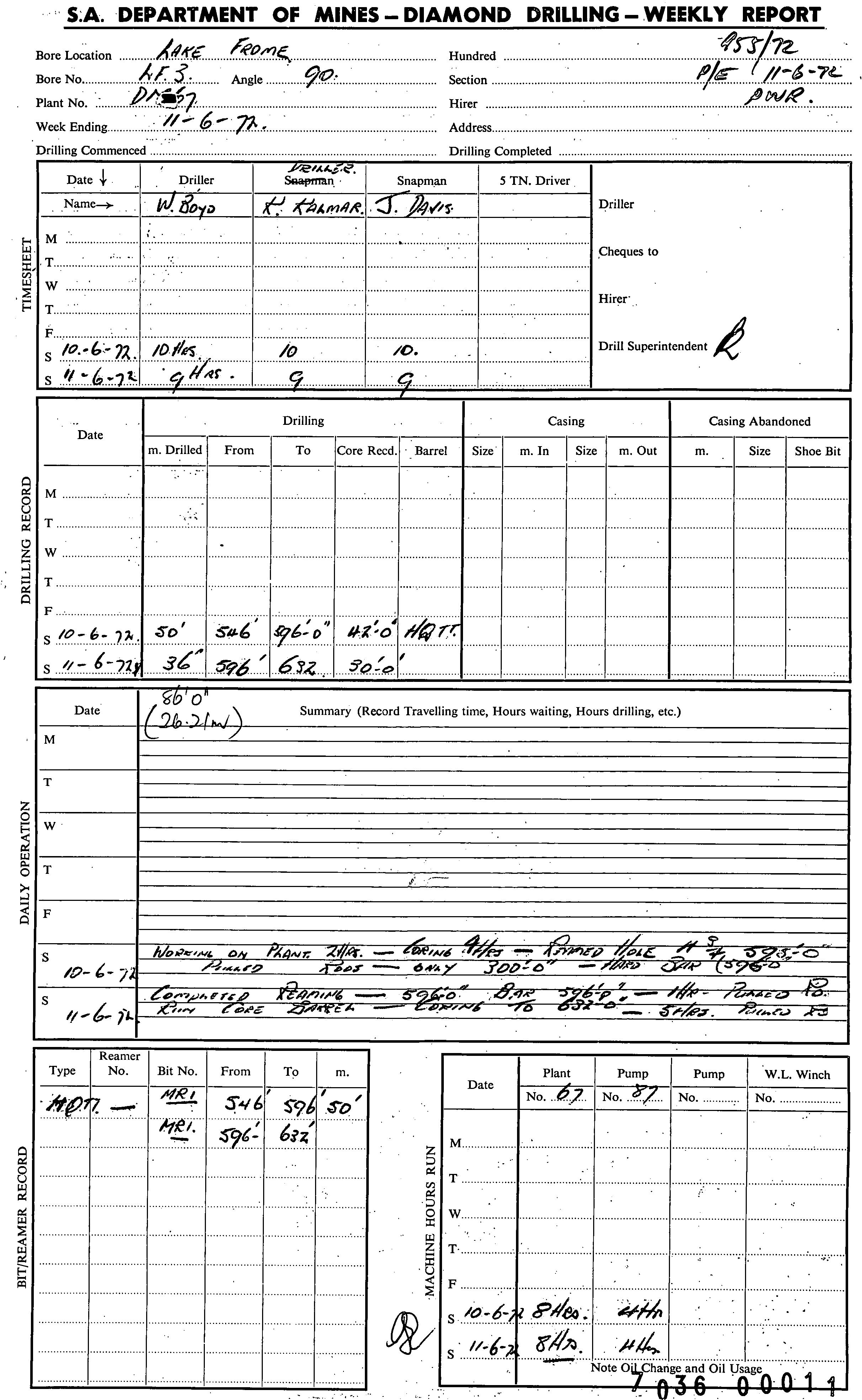 | 211.46 | | Drill core | HARRIS, W.K. | |