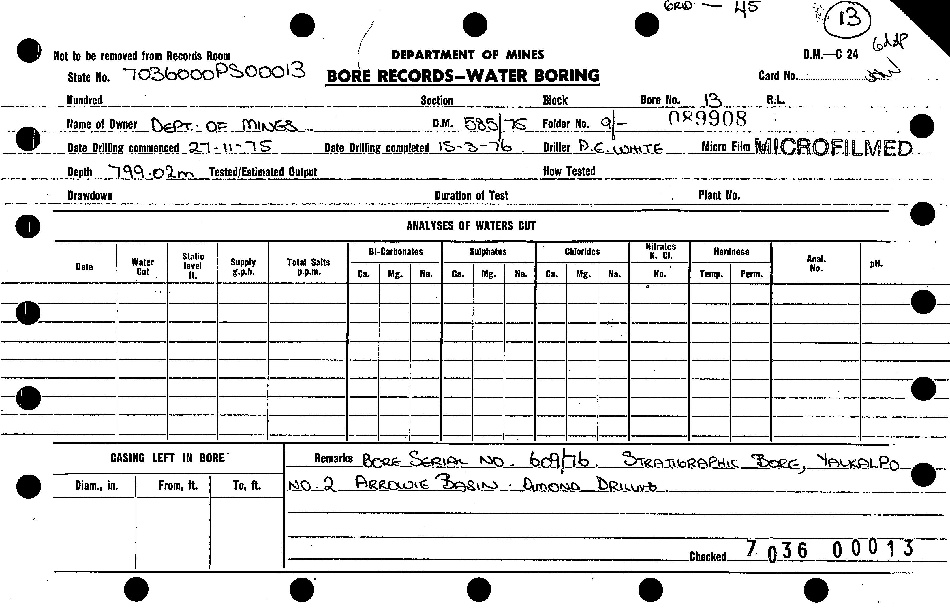 | 506.4 | | Drill core | GRAVESTOCK, D.I. | |