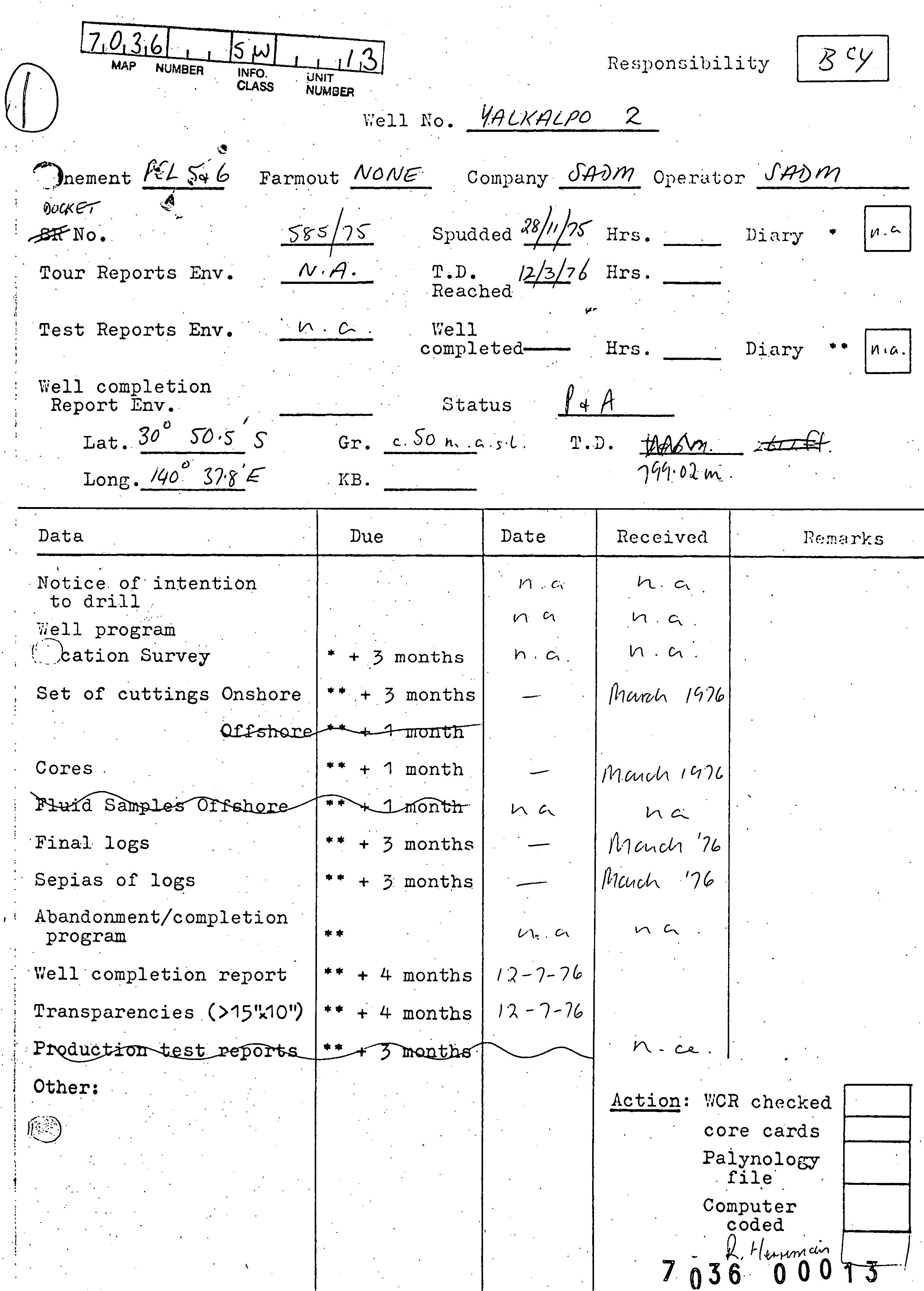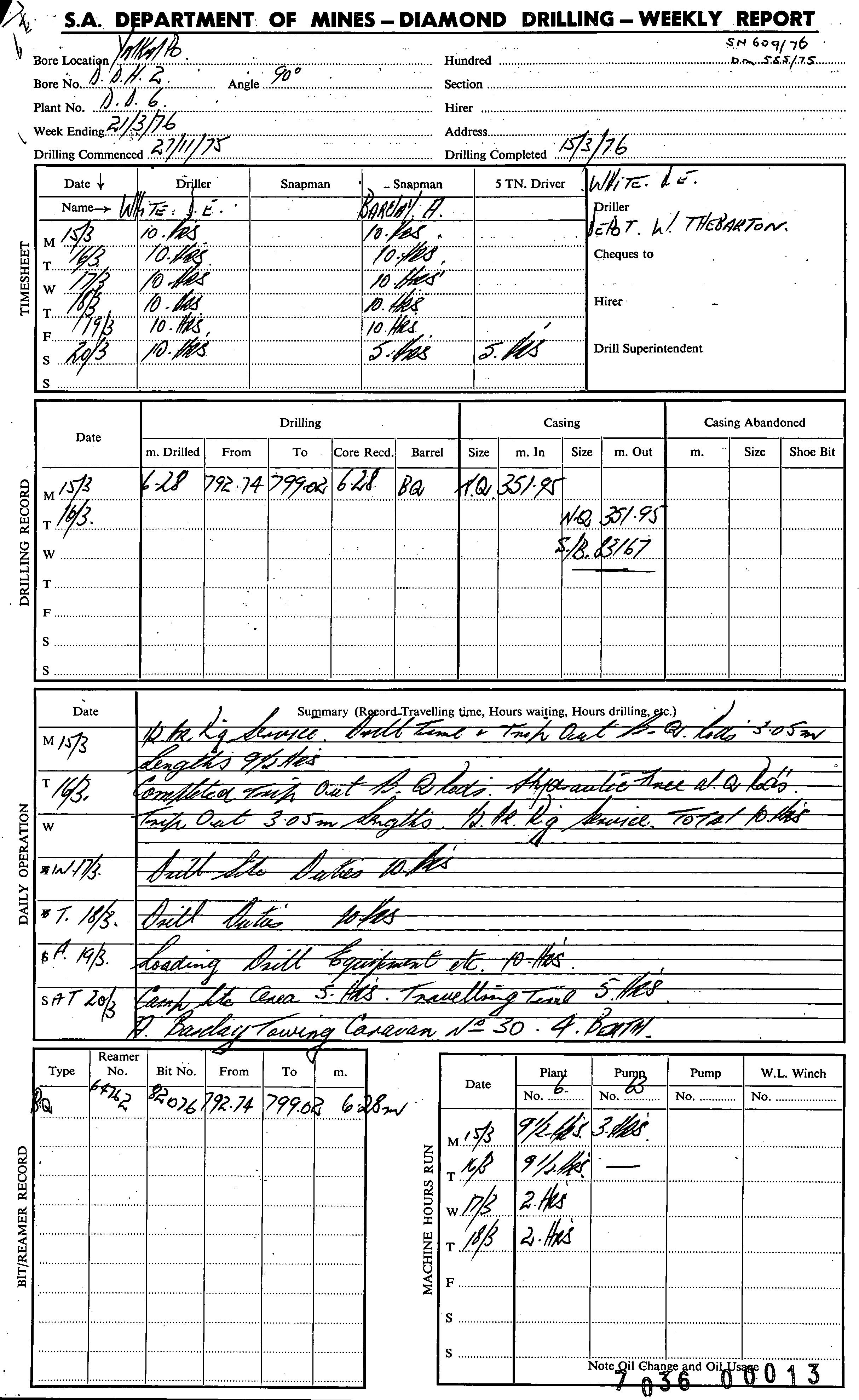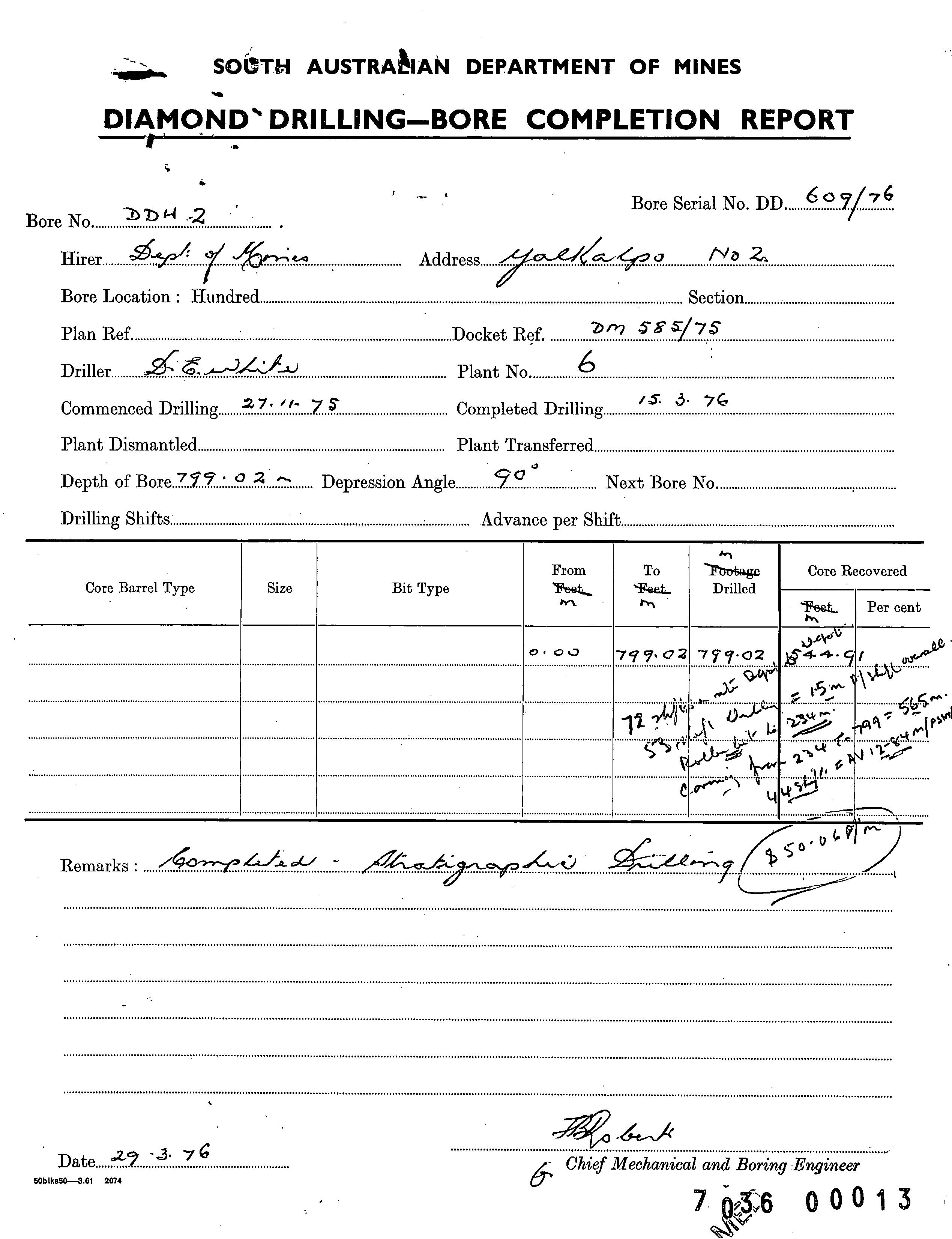| 631.3 | | Drill core | GRAVESTOCK, D.I. | |
