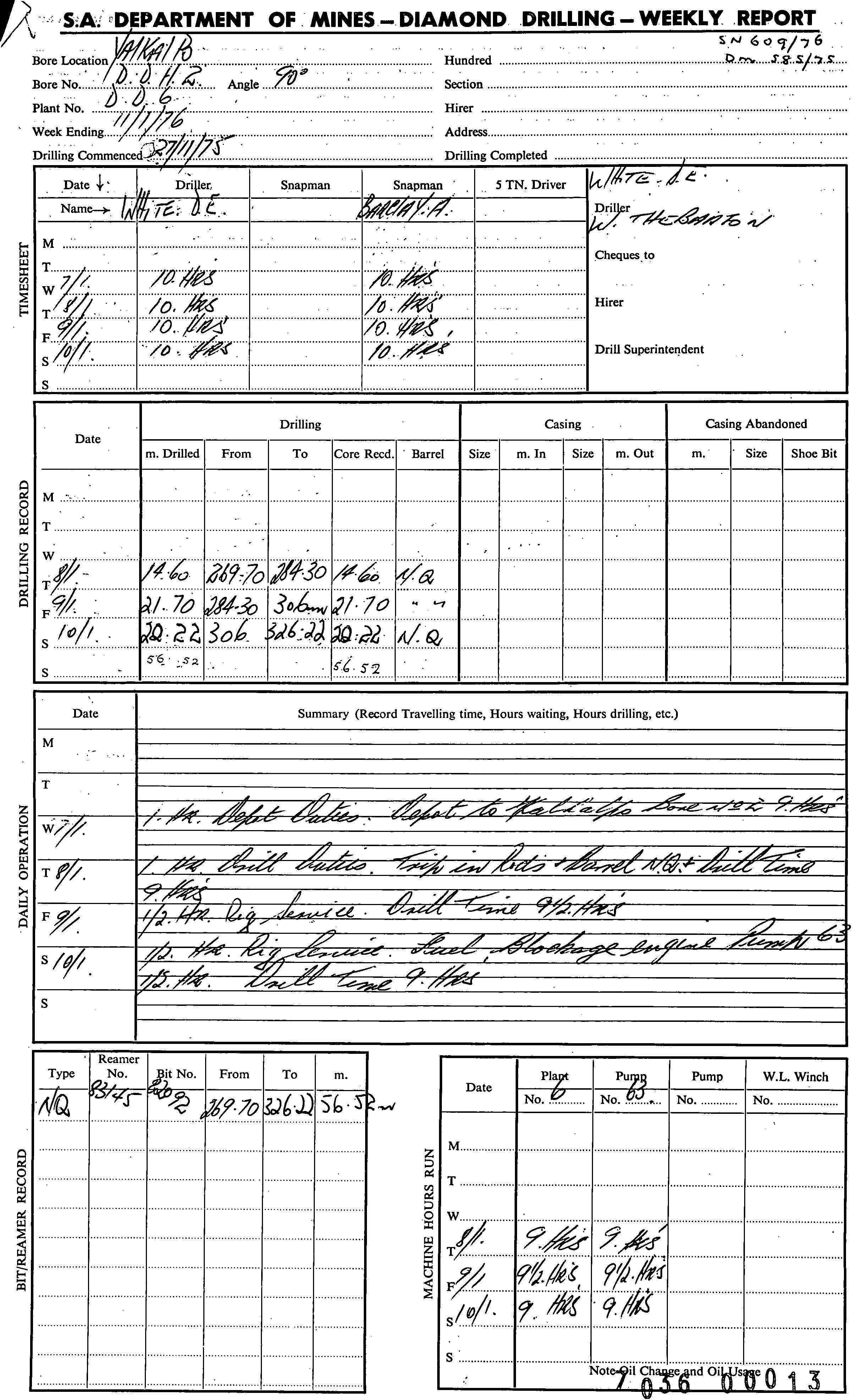 | 509.1 | | Drill core | GRAVESTOCK, D.I. | |