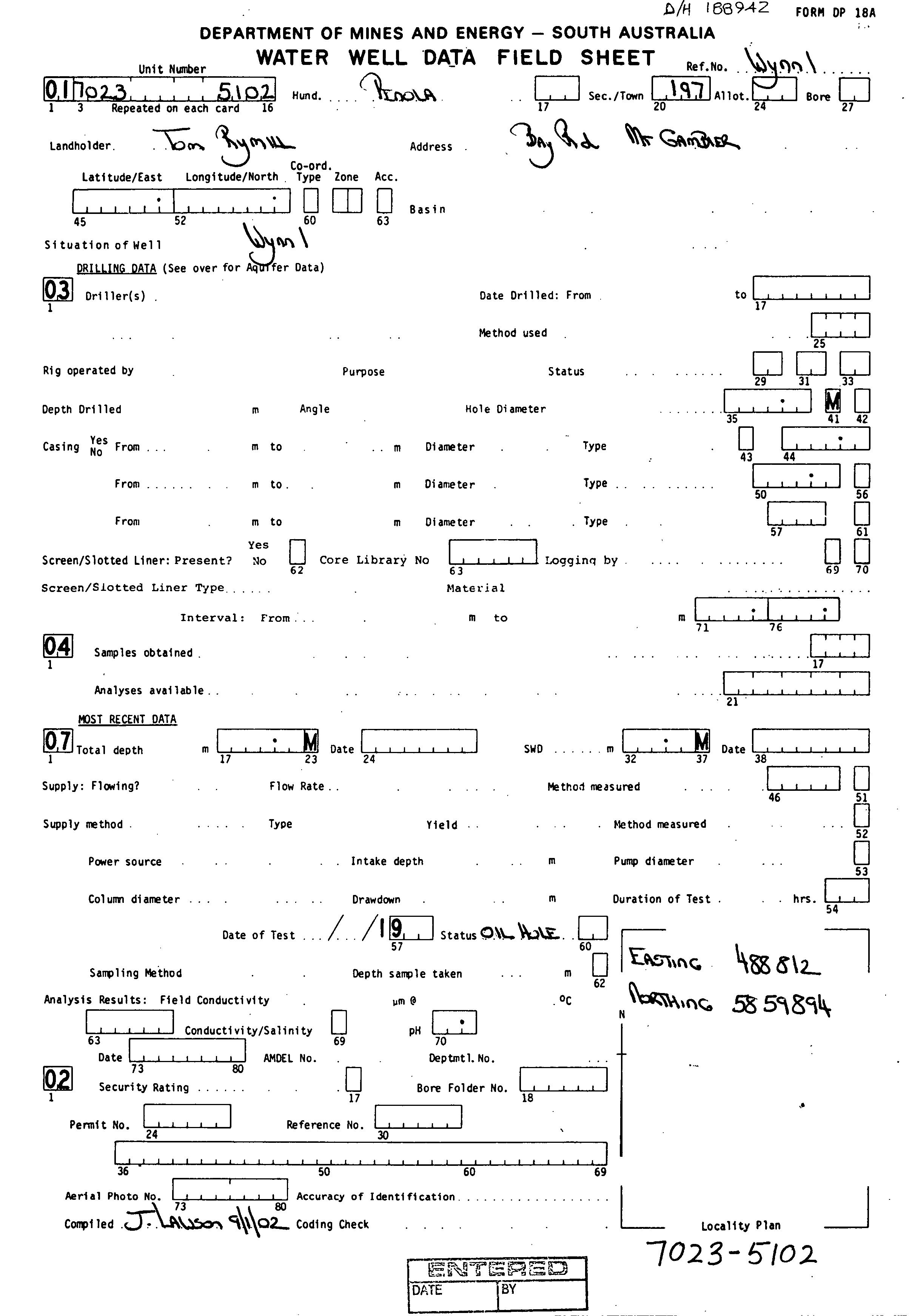 | 1884 | | Drill cuttings | ROWETT, A.I. | 28/02/1995 |